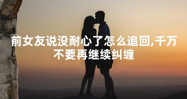 很多男生在女生提出分手之后,总是会很慌张,不知道自己错在哪了。然后就会想要追回女生,但是有的人却是没有用对方法,从而把对方推得越来越远。面对前女友说没耐心了怎么追回呢?