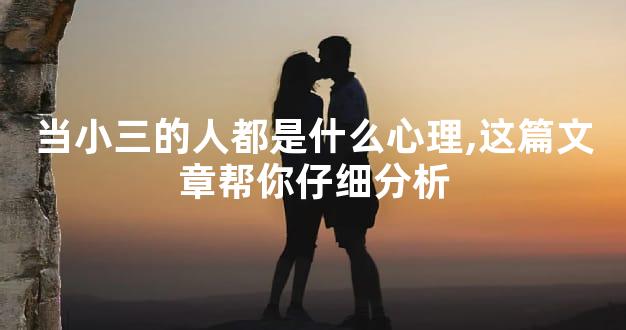 当小三的人都是什么心理,其实要结合具体情况来看待,因为感情关系是复杂多变的,但是明确一点的是小三会严重破坏双方的感情稳定,还会导致感情关系的结束,在道德层面上来说是相当不应该的。