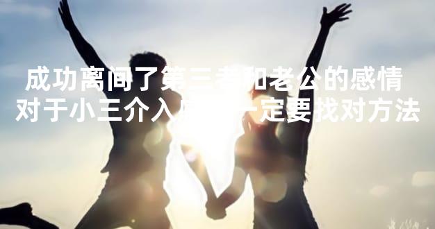 我们的社会是由一个一个小家庭组成的,家庭的和谐才能得到社会的和谐,而且家庭的稳定才能让社会稳定。但是第三者是破坏稳定的一大因素,上面就是教大家如何成功离间了第三者和老公的感情,希望能够帮助到大家了。