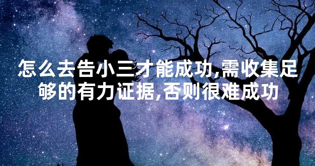 怎么去告小三才能成功,一定要收集到足够的证据支撑,如夫妻共同财产遭到了损害、另一半跟小三以夫妻的名义同居并领取了结婚证等,只要符合以上两点的,原配就可以去起诉小三了,且成功率很高。